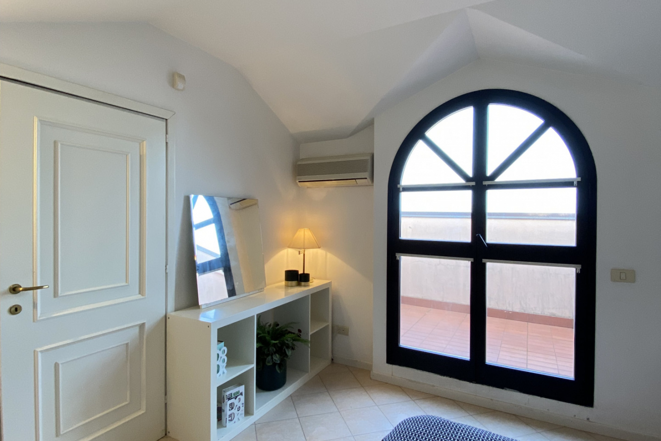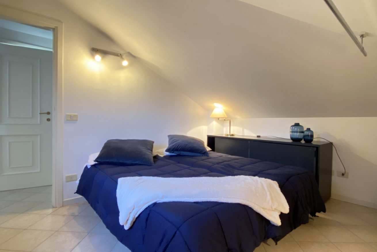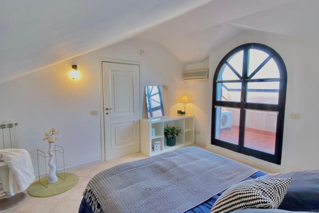 La camera matrimoniale del piano superiore è dotata di terrazzo vista mare.