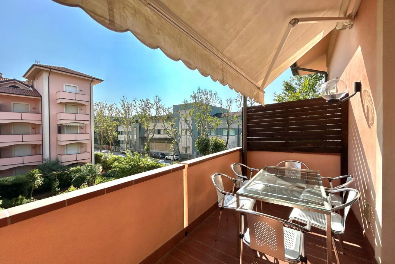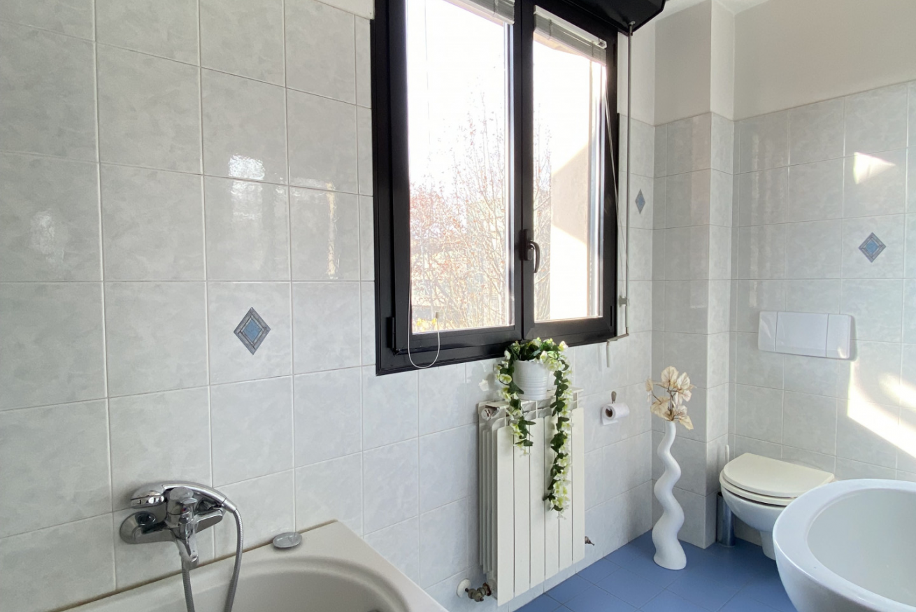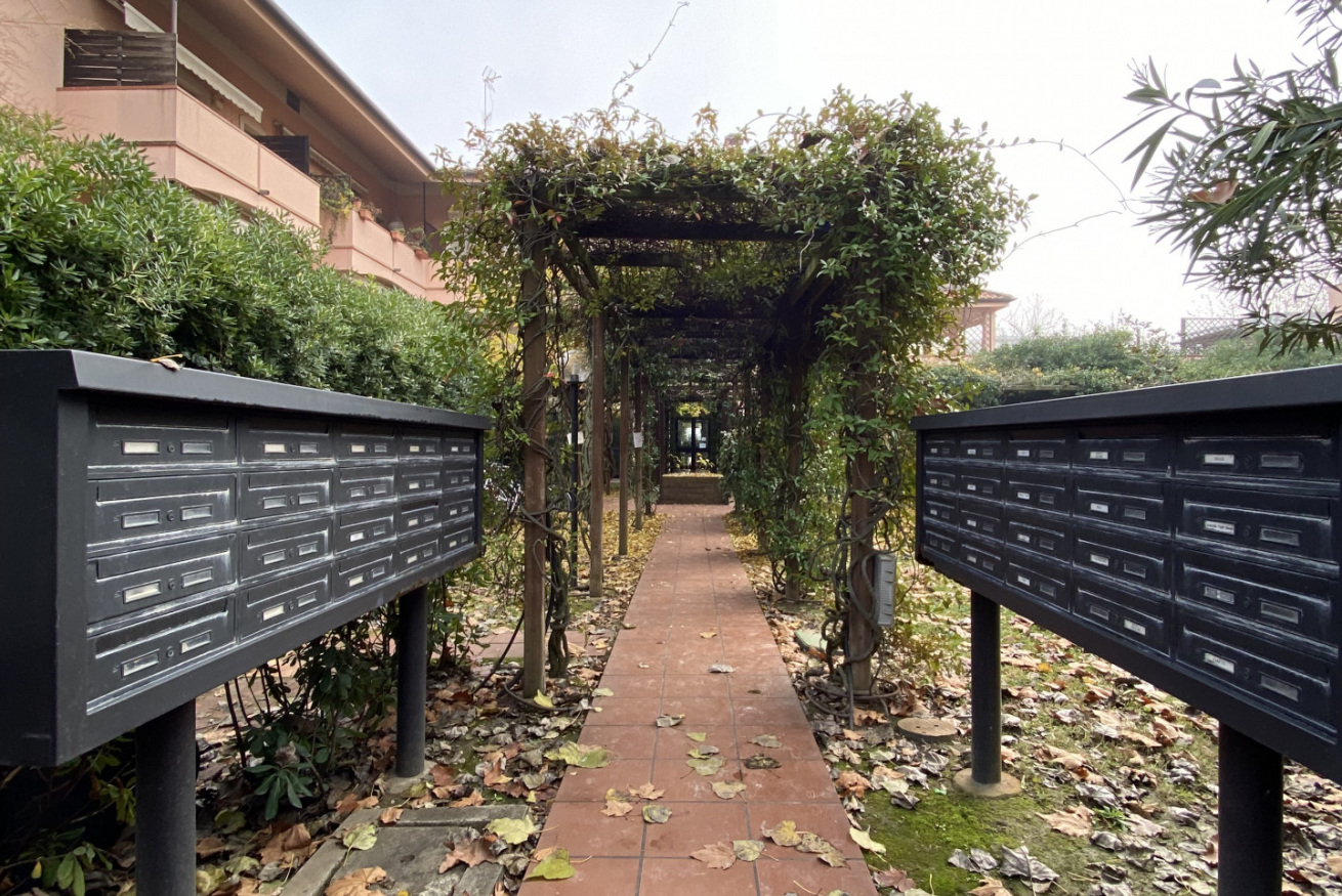 Il terrazzo affaccia sul bellissimo giardino condominiale che serve l’edificio e nel quale è possibile parcheggiare le biciclette,