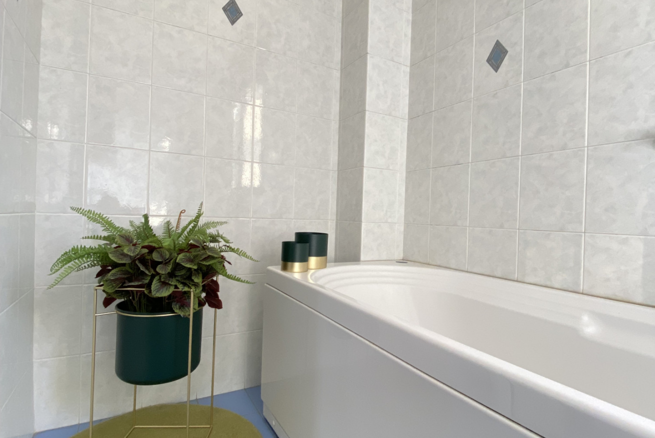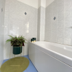 Una camera matrimoniale, un bagno con vasca ed uno sgabuzzino in cui si trova la lavatrice.